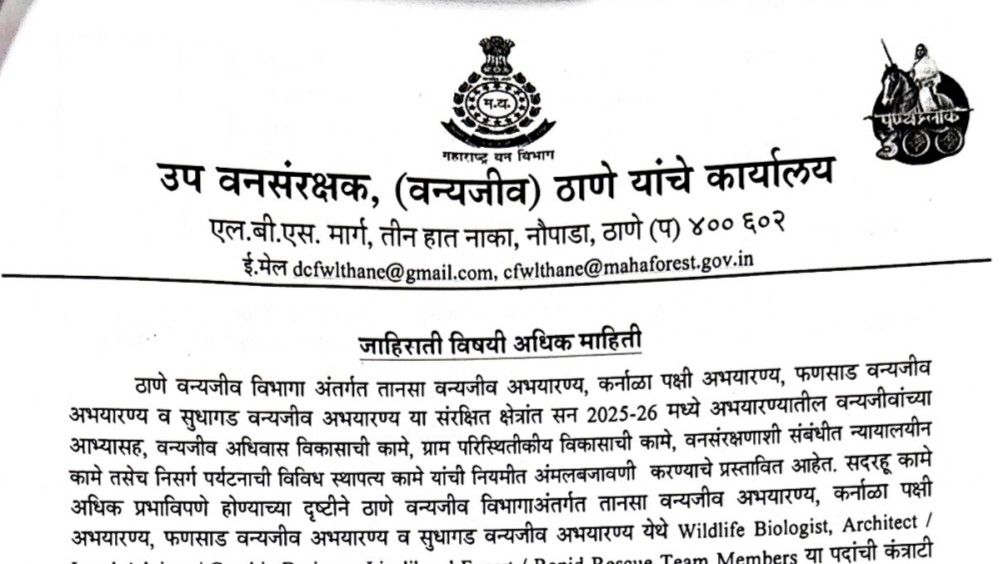 वनविभाग ठाणे अंतर्गत वन्यजीव जीवशास्त्रज्ञ, आर्किटेक्ट, कायदेशीर सल्लागार, ग्राफिक डिझायनर, उपजीविका तज्ञ, जलद बचाव पथक सदस्य ही पदे भरण्यात येत आहेत. या भरती मध्ये एकूण 014 पदे भरली जात आहेत. 10वी ते पदवीधर व इतर पात्रता उत्तीर्ण उमेदवारांची भरती केली जाणार आहे. वनविभाग ठाणे मध्ये नोकरी मिळविण्याची चांगली संधी आहे. या भरती मध्ये निवड करण्यात आलेल्या उमेदवारांना वेतन / मानधन: दरमहा रु. 15,000/- ते रु. 60,000/- पर्यंत (प्रवास भत्ता वगळून) दिला जाणार आहे.